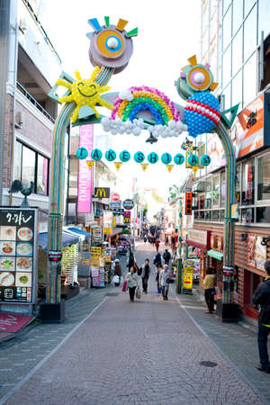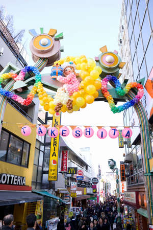 TOKYO, JAPAN - MARCH 22: Takeshita Street (Takeshita Dori) on March 22, 2015 in Tokyo, Japan. It is considered a birthplace of Japan's fashion trends.