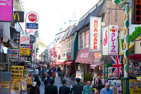 TOKYO,JAPAN - NOVEMBER 18, 2019: People visit Takeshita street in Harajuku in Tokyo Japan.This place is destination for teenager lifestyle in Tokyo.