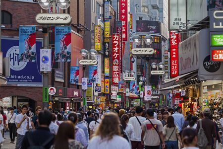 Tokyo, Japan - 25 August 2019: people walk in the shopping area in Udagawacho street Tokyo, Shibuya City - Image
