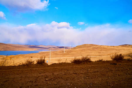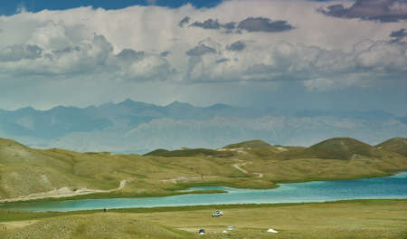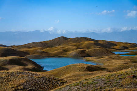 Alay Valley of Osh Region, Kyrgyzstan, blue sky over few small beautiful lakes