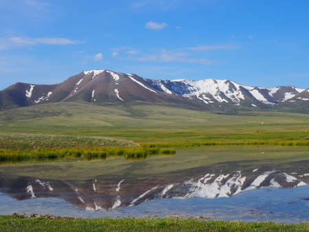 Mountain spring landscape, nature Bishkek Kyrgyzstan