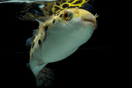 White spotted puffer fish in an aquarium close up