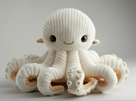Adorable Plush Octopus Toy with Soft White Fabric and Smiling Face.