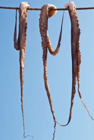Drying octopus, preparing for barbecue, Naxos, Greece