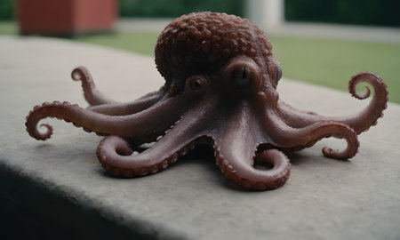 Close up of octopus statue on the cement floor in the park