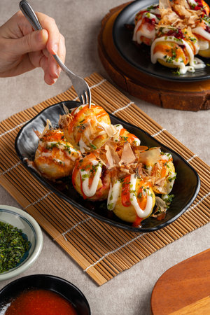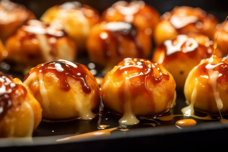 Takoyaki balls, traditional Japanese snack cuisine