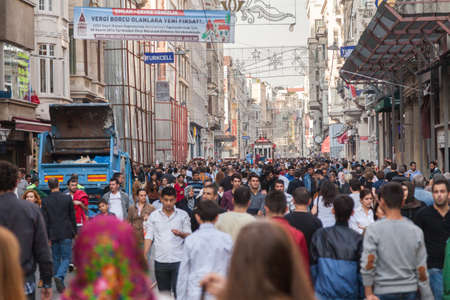 Istanbul, Turkey - August 28, 2013: Crowd of people on famous Istiklal street in Istanbul
