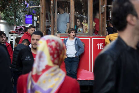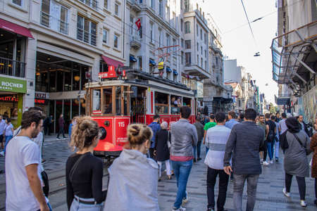 ISTANBUL / TURKEY - OCTOBER 12, 2019: Taksim Istiklal Street is a popular destination in Istanbul, Beyoglu, Turkey.
