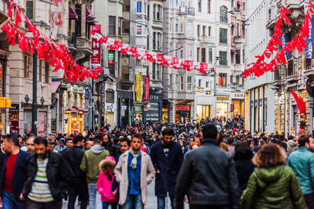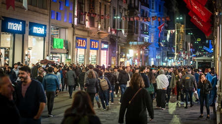 Istanbul, Turkey - October-27.2019: People visiting and shopping are crowded on Istiklal Avenue.