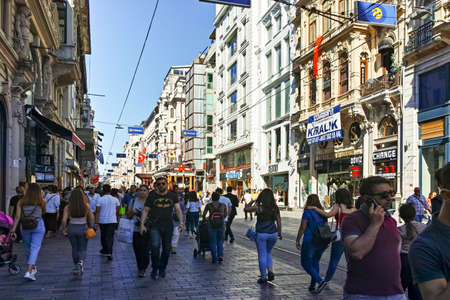 ISTANBUL, TURKEY - JULY 26, 2019: People at the shopping pedestrian street near Taksim Square at the center of city of Istanbul, Turkey