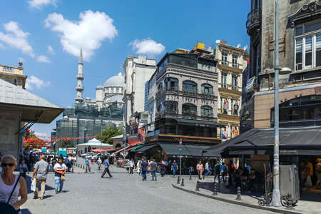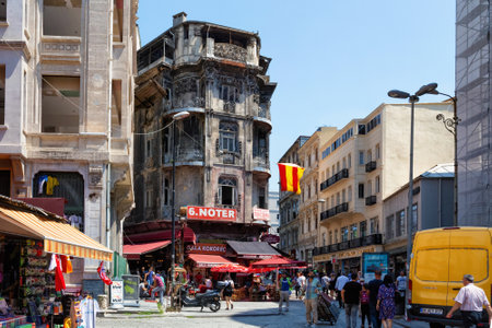 ISTANBUL, TURKEY - JULY 26, 2019: Typical Building and street in Eminonu district in city of Istanbul, Turkey
