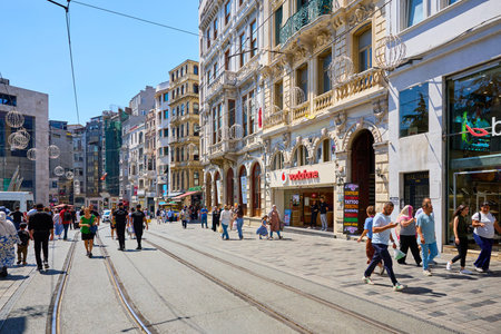 ISTANBUL, TURKIYE - JUNE 11, 2022: People on Istiklal Avenue where the most popular destination of Istanbul for shopping and entertainment.