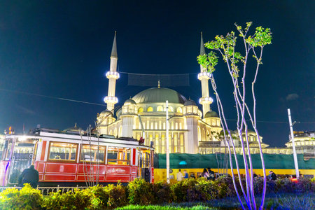 turkey Istanbul 12 may 2023. Nostalgic red tram in Taksim Square..