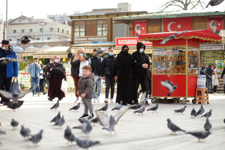 (Istanbul - Turkey 16.February.2021) - Eminönü square is a popular place in Istanbul. Peddlers and people.