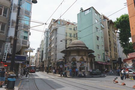 ISTANBUL, TURKEY - JULY 26, 2019: İstiklal shopping pedestrian street near Taksim Square at the center of city of Istanbul, Turkey