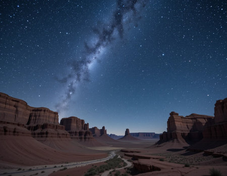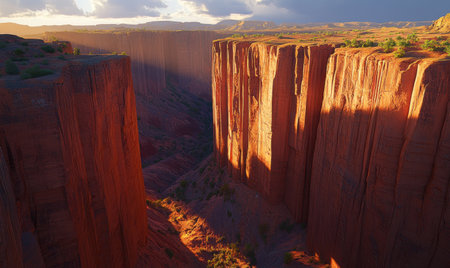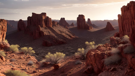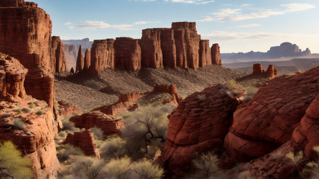 AI Generated. Breathtaking canyon landscape with towering red rock formations