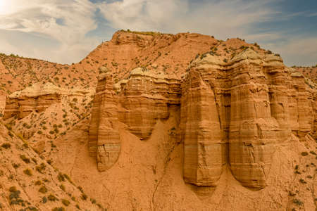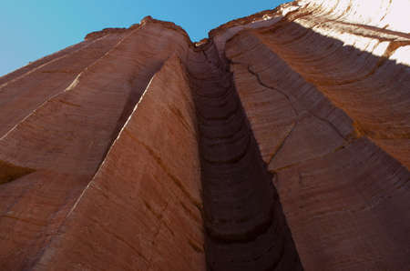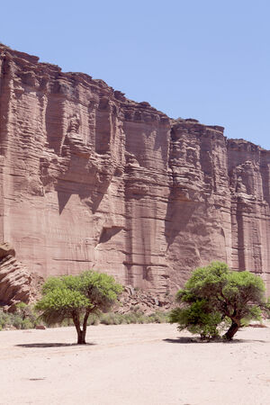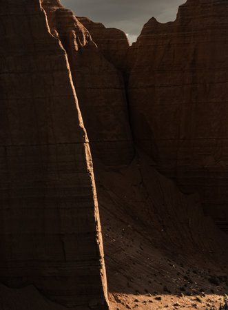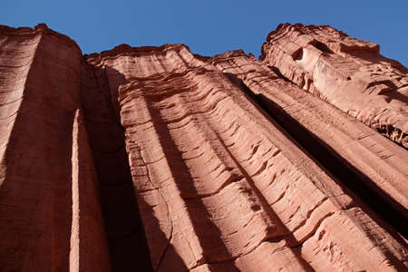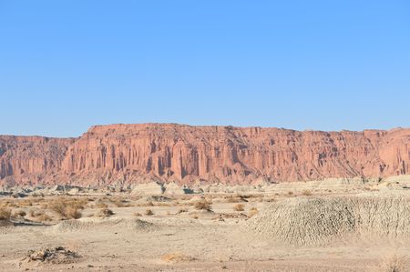 Steep sandstone cliffs in the Talampaya National Park, La Rioja, Argentina