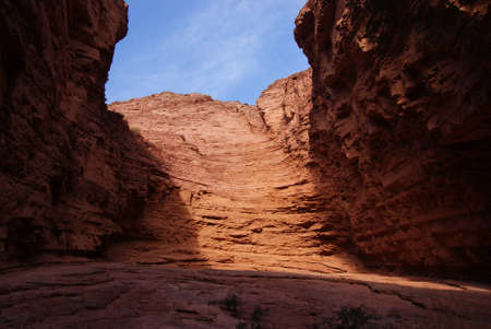 The anphitheater in the Quebrada de las Conchas in the Calchaqui Valley, near Cafayate, Argentina. It is a valley in the northwestern region of Argentina and it is best known for its contrast colours and its unique geography