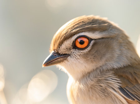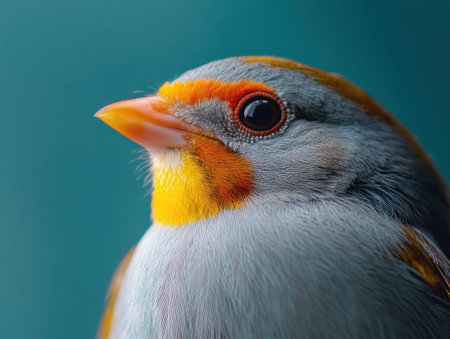 AI Generated. close up of a small bird standing with vibrant orange eye