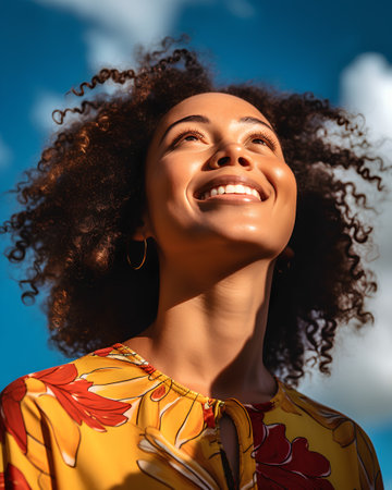 Beautiful african american woman with afro hairstyle smiling