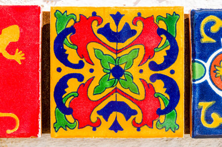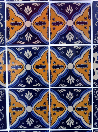 Colorful vintage spanish style ceramic tiles wall decoration.