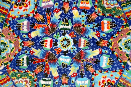 Beautiful oriental ceramic tiles close up view colorful painting looks like picture, Barcelona, Spain.