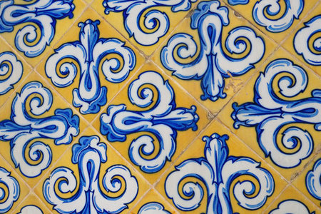 Typical Portuguese decorations with yellow ceramic tiles (Portugal - Europe)
