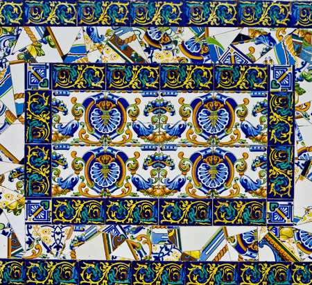 Colorful spanish broken painted tiles mosicac with interesting designs