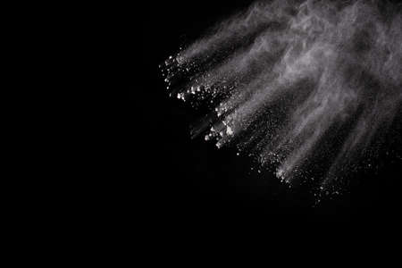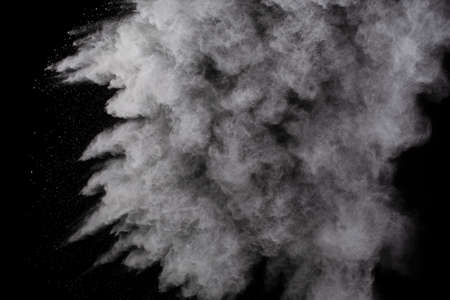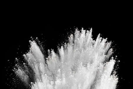 White powder explosion on black background. Colored cloud. Colorful dust explode. Paint Holi.