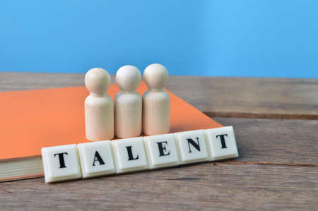 Wooden people figures and square letters with text TALENT