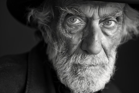 Portrait of an old man with a beard and mustache. Black and white.