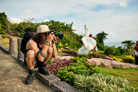 Gotta get that shot. Shot of a young tourist taking photos while on vacation.