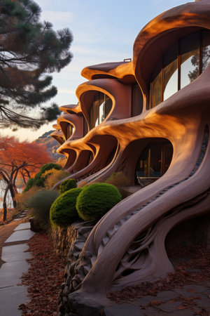 Traditional house with intricate wooden walls in Mazandaran, Iran. biomorphic architecture