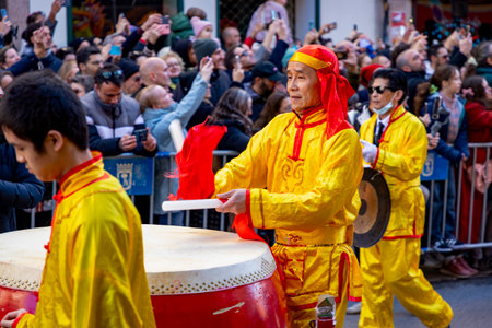 Chinese citizens celebrating Lunar New Year in the streets during public festivities marking the Year of the Horse in 2026. Cultural tradition and community event.