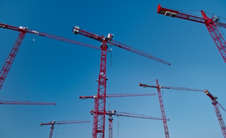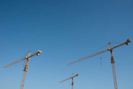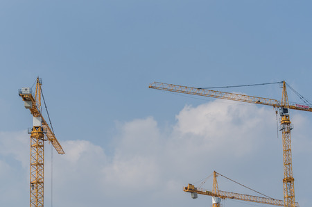 Construction cranes, Tower Cranes against the blue sky with clouds