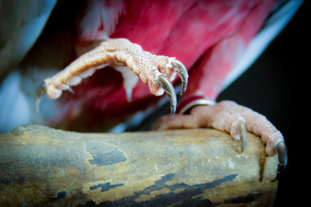 A macro perspective reveals the intricate, scaly texture of a parrots powerful claw as it firmly grips a rustic tree branch. This intimate view captures the raw beauty and detail of wildlife in its natural habitat, showcasing the strength and connection of the bird to its environment.