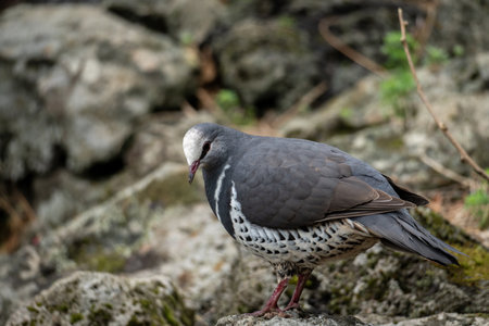 Portrait of a Wonga pigeon on a rock with selective focus