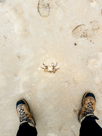 Upside down crustacean, crab, on the sandy beach