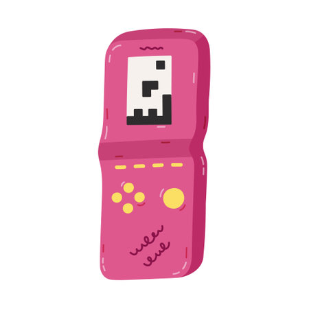 Cute cartoon retro game console from 90s and 00s. Retro tetris, electronic toy as badge of Y2k. Nostalgia for vintage and 1990s aesthetic, vibes. Hand drawn old game device isolated on white.