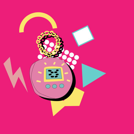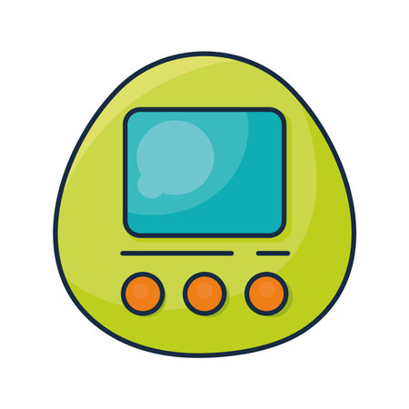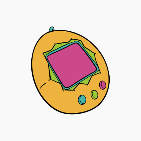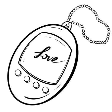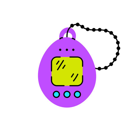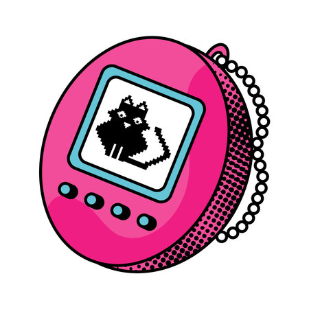 Retro portable pets pocket game of 90s, electronic toy, doodle style flat vector