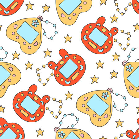 Cartoon doodle style pretty childish endless background with 90s various Japanese pocket game devices