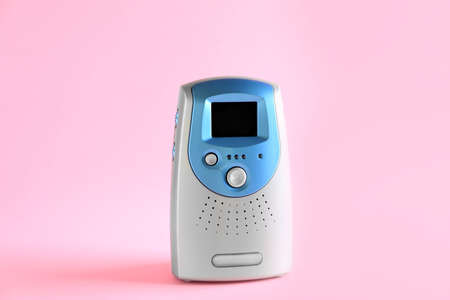 Retro Video Game Console On Abstract Juicy Background Of Pink And Pupur Vivid Colors. 3d rendering