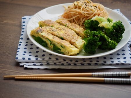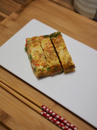 Korean egg rolls mixed ham and broccoli, Tamagoyaki