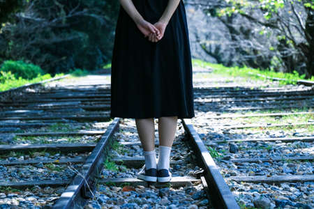 Girl standing on abandoned railways Keage Incline