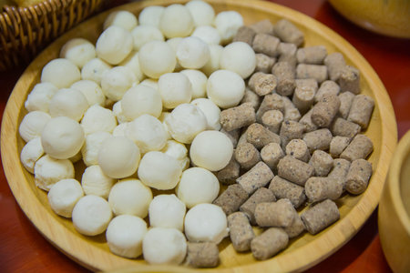 nata de coco in wooden bowl fermentation of coconut water for healthy dessert