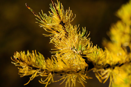 autumn yellow larch twigs closeup
