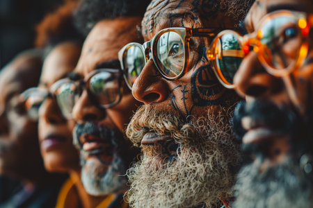 A man showcases his cultural heritage by wearing colorful traditional clothing, coupled with a wide-brimmed hat and stylish sunglasses.