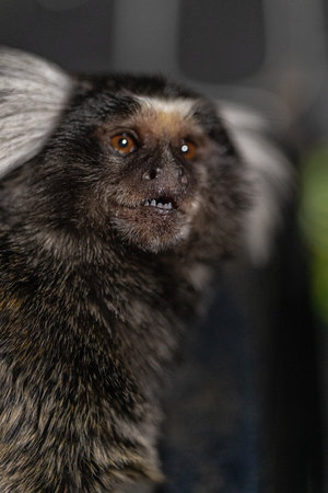 Black tufted-ear marmoset, Callithrix penicillata, single mammal in Brazil