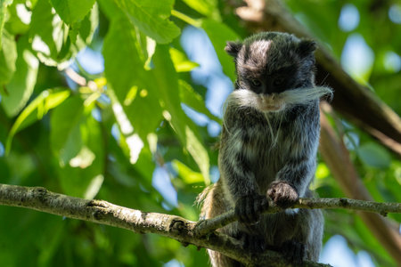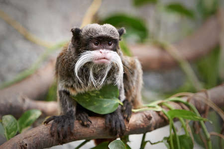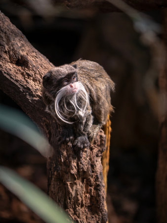 Emperor Tamarin sitting on a branch in its habitat