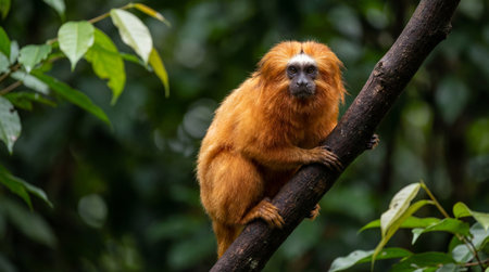 Beautiful rare golden-headed lion tamarin (Leontopithecus chrysomelas)